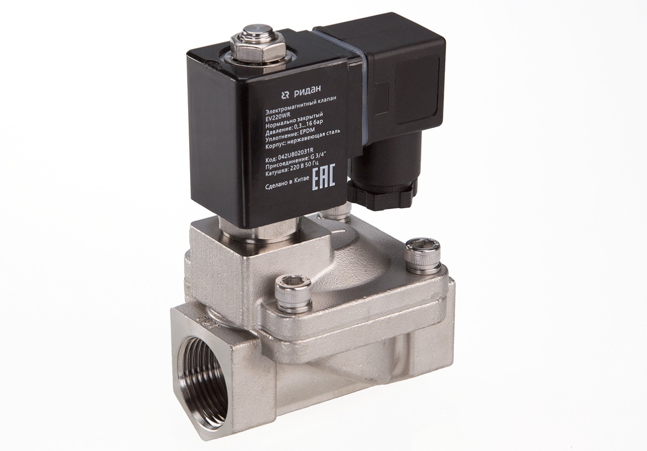Ридан 042U803202R — Клапан электромагнитный EV220WR, присоединение G 1 1/4, материал уплотнения EPDM, нормально закрытый, 0,3…16 бар, с катушкой 24 В, постоянный ток