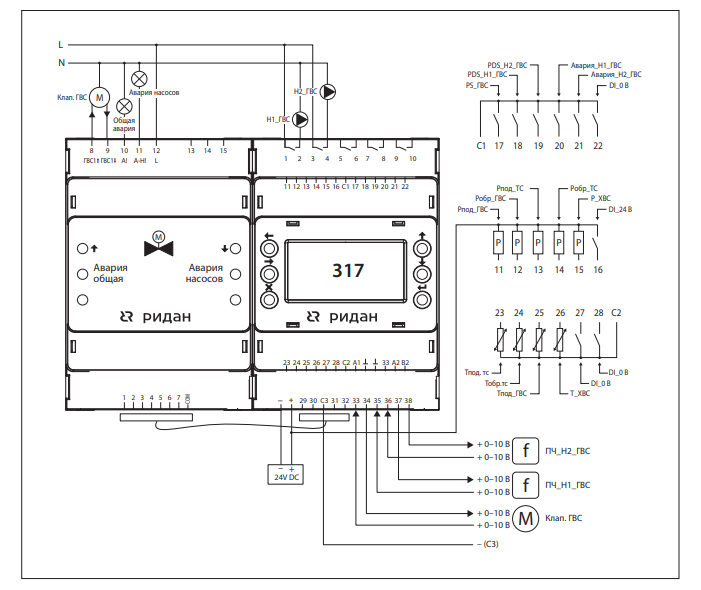 Ридан 087H3807R — Контроллер ECL-3R 317 FC, напряжение питания 24V DC