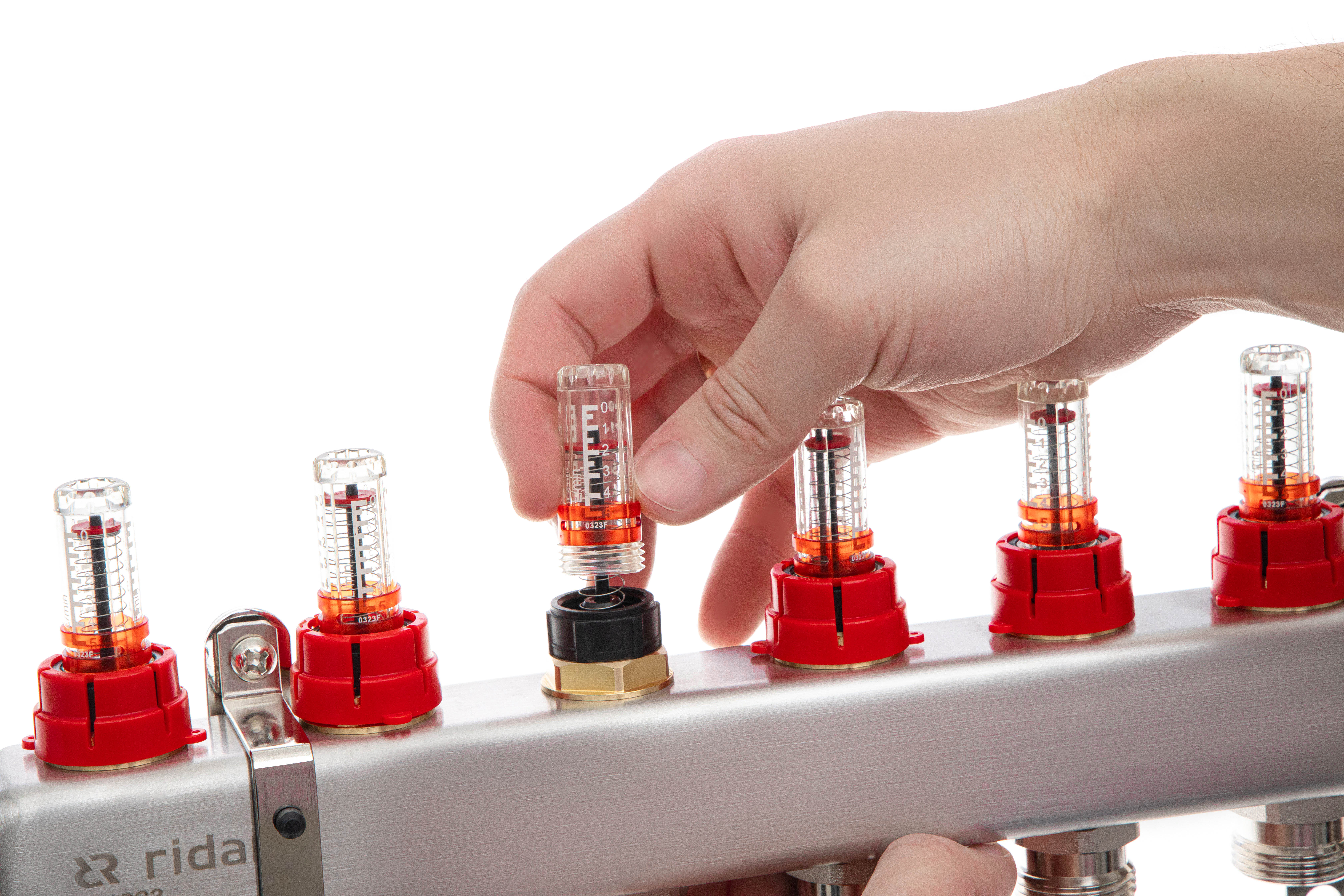 Ридан 088U0958R — Комплект коллекторов SSM-8RF set с расходомерами, кронштейнами, ручным воздухоотводчиком, сливным краном и торцевой заглушкой, 8 контуров
