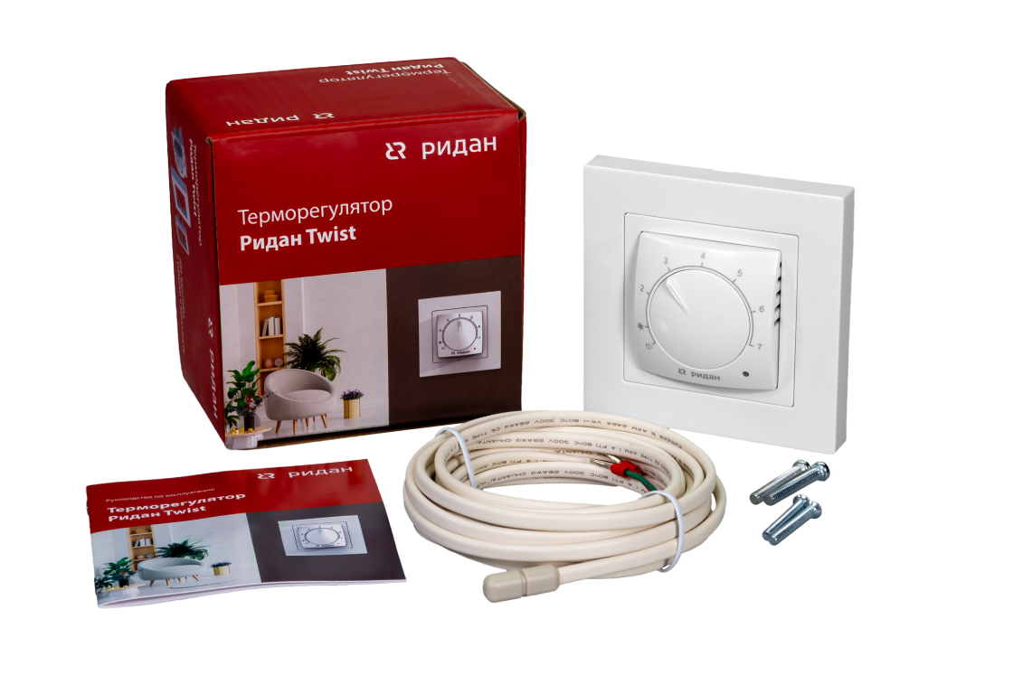 Ridan 21RT1004R — Розничный комплект для теплого пола: нагревательный мат Ridan TF-150 2,5 м² с терморегулятором Ridan Twist (белый)