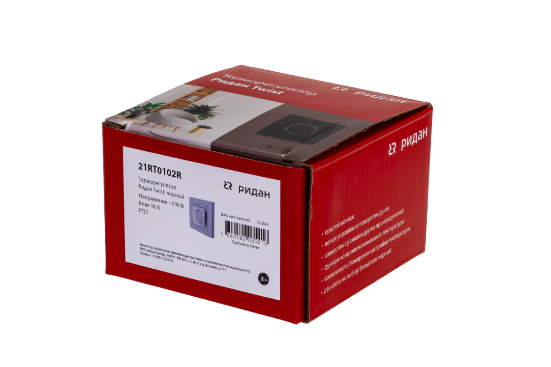 Ridan 21RT1020R — Розничный комплект для теплого пола: нагревательный мат Ridan TF-150 3 м² с терморегулятором Ridan Twist (черный)