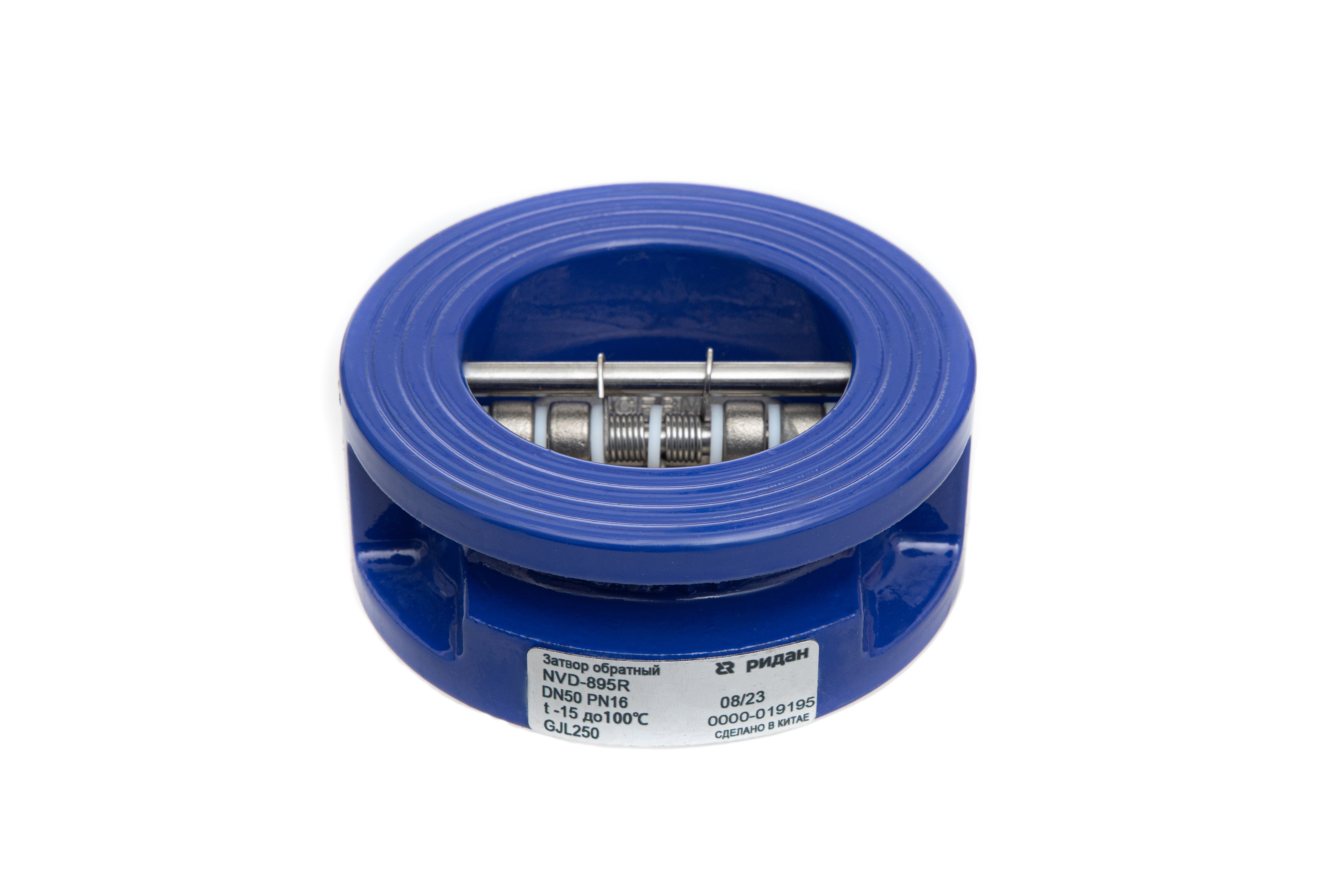 Ридан NVD-895R 082X8502R — Затвор обратный межфланцевый пружинный двустворчатый, PN16, DN250, чугун GJL250
